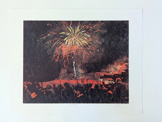 She enjoys seeing pixelated images transformed through the dimensional aspect of carving and the evocative nature of woodcuts.